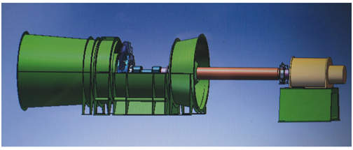 2.風(fēng)機(jī)采用單電機(jī)驅(qū)動(dòng),電機(jī)通過(guò)長(zhǎng)軸安裝在風(fēng)機(jī)外面,這種安裝方式特別適合大型礦井前后期使用功率差別大的特點(diǎn),風(fēng)機(jī)設(shè)計(jì)不受電機(jī)尺寸限制,根據(jù)需要使用不同的電機(jī),節(jié)約能源,更換方便。