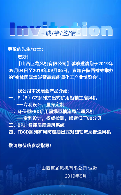 【山西巨龍風(fēng)機有限公司】邀您參加陜西榆林國際煤博會